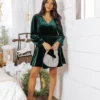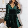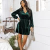 The Steve Madden Green Velvet Kara Mini Dress is a luxe choice for holiday festivities and beyond!